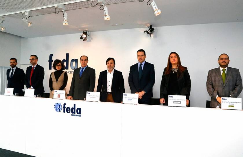 El presidente de FEDA, Artemio Pérez Alfaro, ha estado acompañado por el presidente de ADIEX, Miguel Tapiador, y los representantes de las entidades financieras que colaboran con la Confederación en este ambicioso programa de internacionalización para empresas exportadoras, así como para emprendedores, futuros empresarios que quieran trabajar en el comercio exterior.