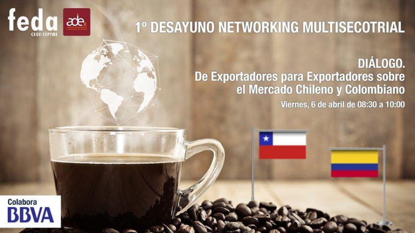 La Asociación de Importadores y Exportadores de Albacete, ADIEX, ha organizado para este viernes, día 6 de abril, el primer desayuno networking multisectorial de exportadores para exportadores. Tendrá lugar en FEDA, de 8,30 a 10,00 horas. Una veintena de empresas se darán cita en esta primera experiencia, con un aforo ya completo. Este primer diálogo entre empresarios exportadores estará dedicado a los mercados chileno y colombiano.