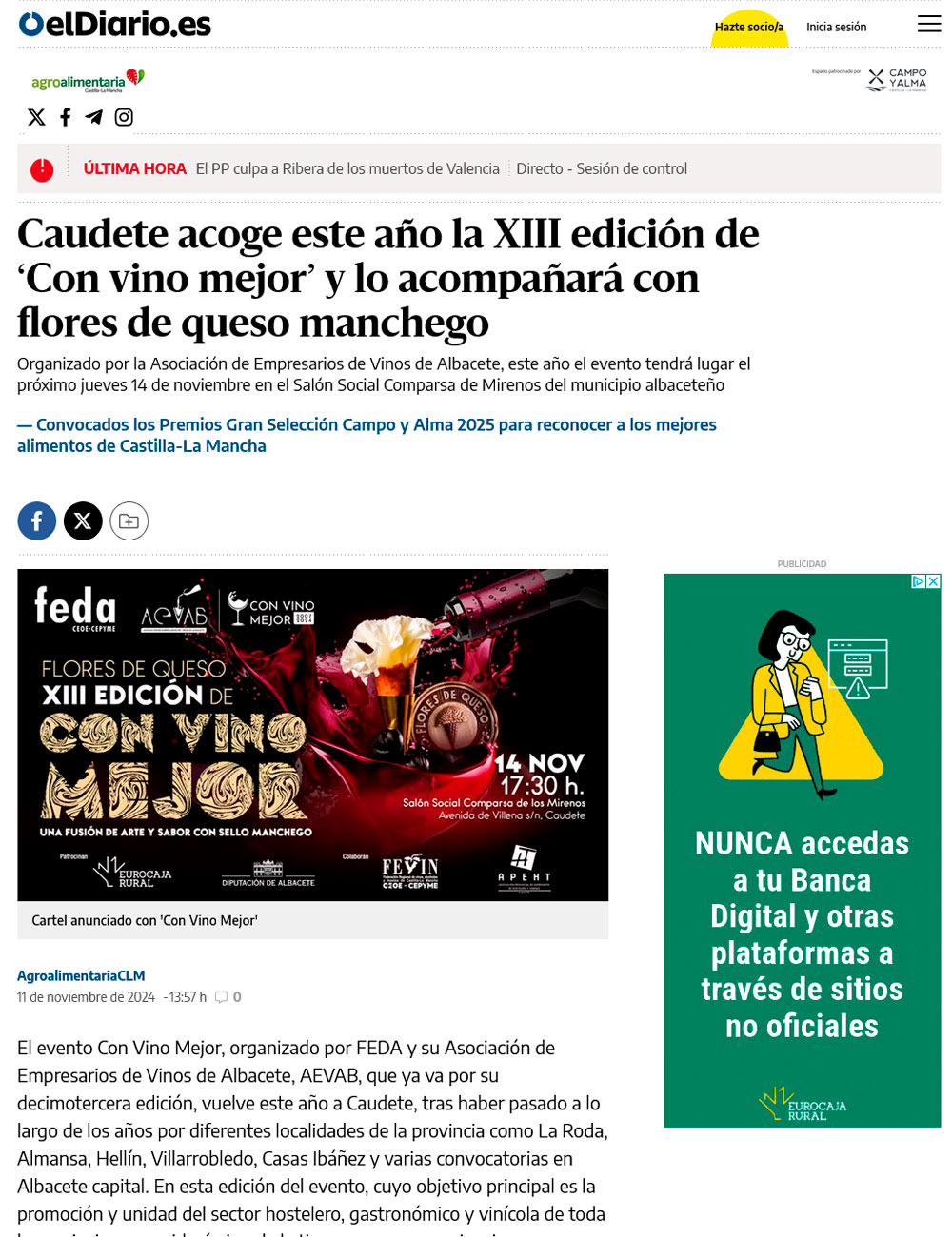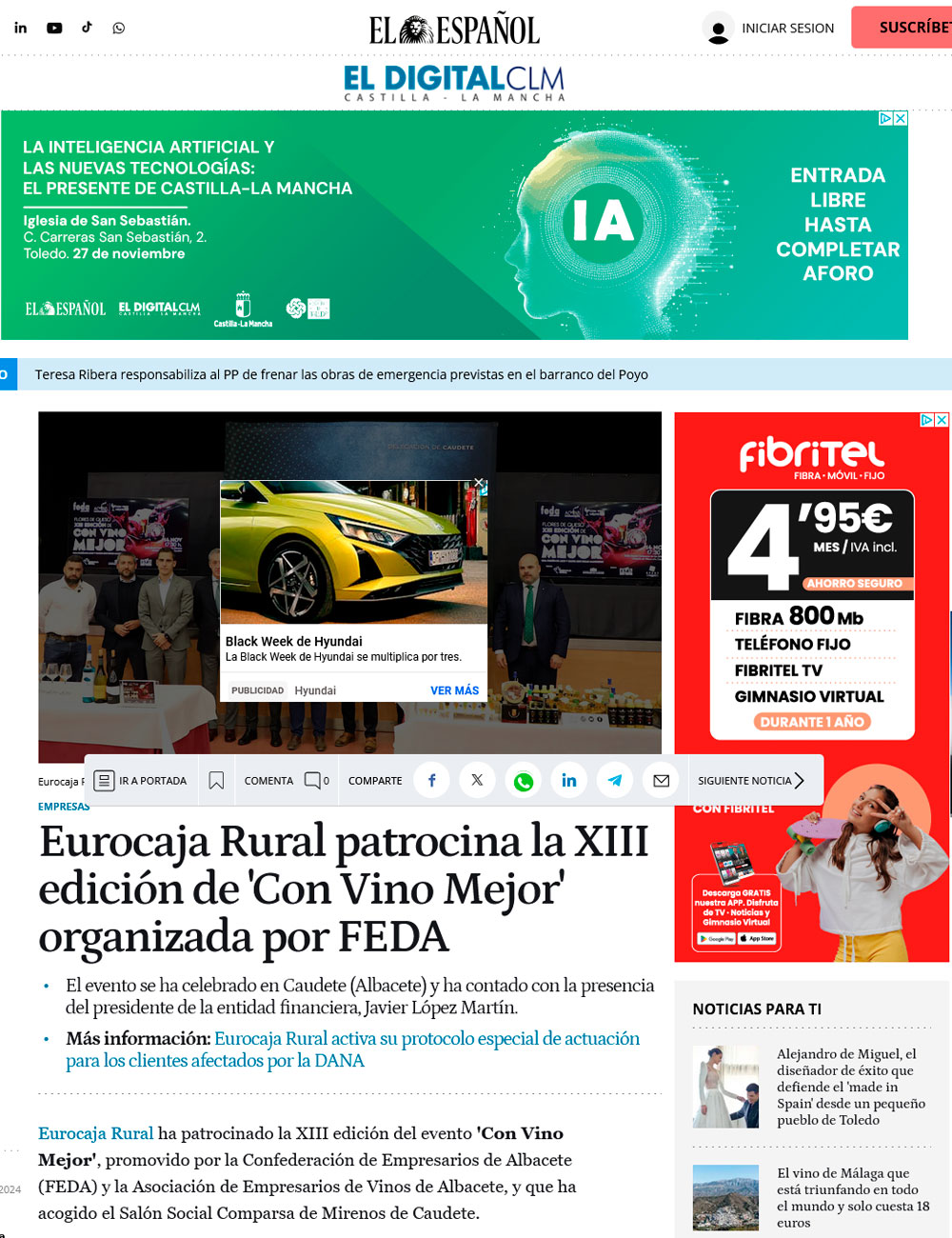 - El Español: EUROCAJA RURAL patrocina la XIII Edición de “Con Vino Mejor” organizada por FEDA.