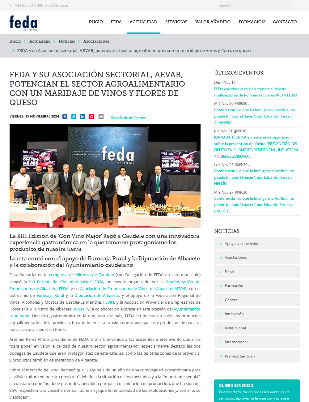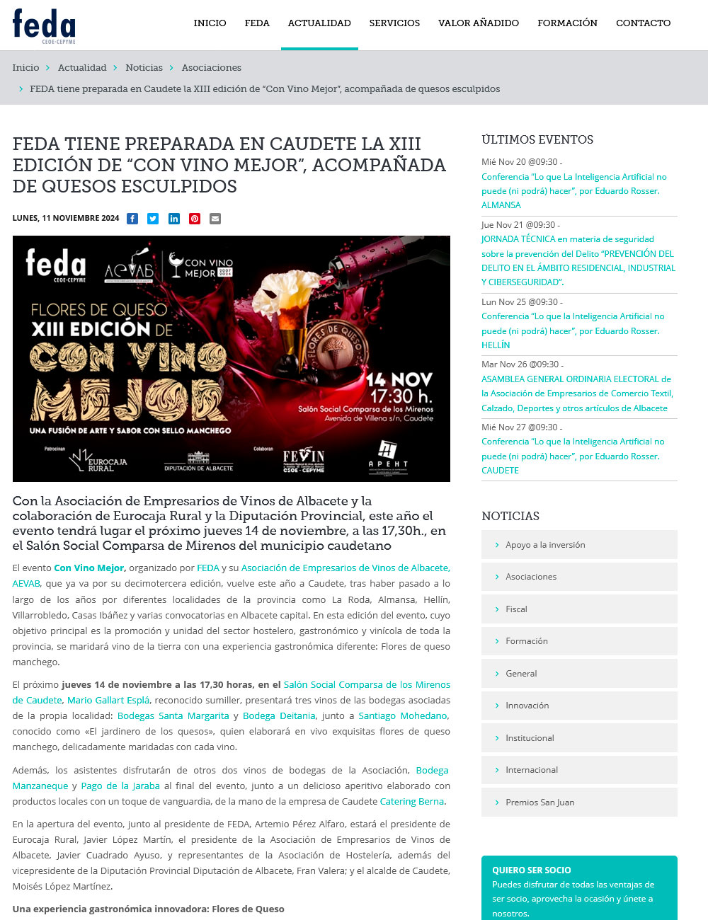 - FEDA: FEDA y su Asociación sectorial, AEVAB, potencian el sector agroalimentario con un maridaje de vinos y flores de queso
