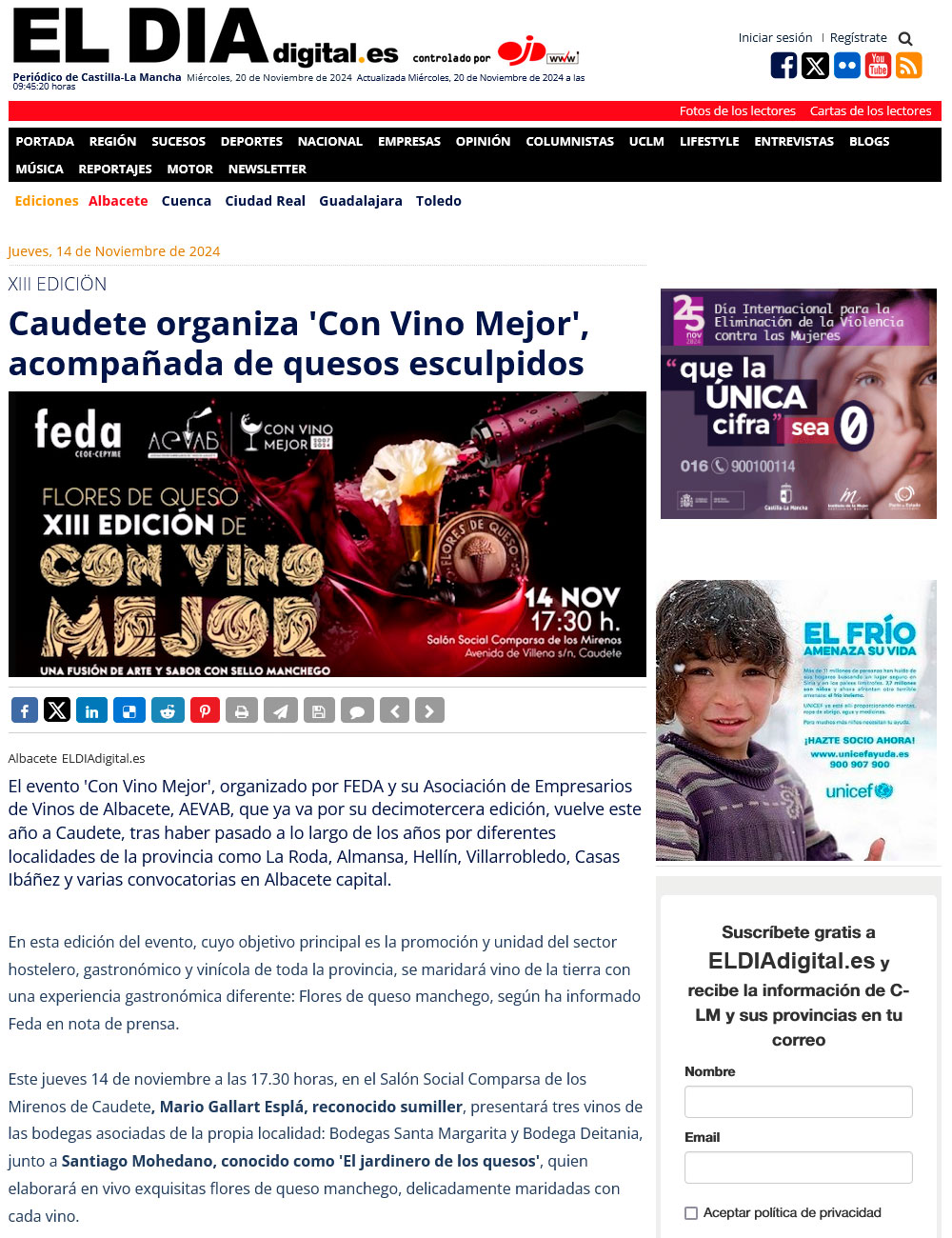 - El Día Digital: Caudete organiza “Con Vino Mejor” acompañada de quesos esculpidos.