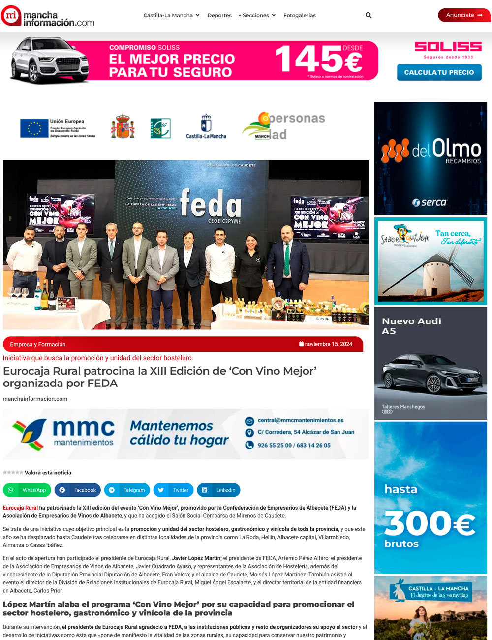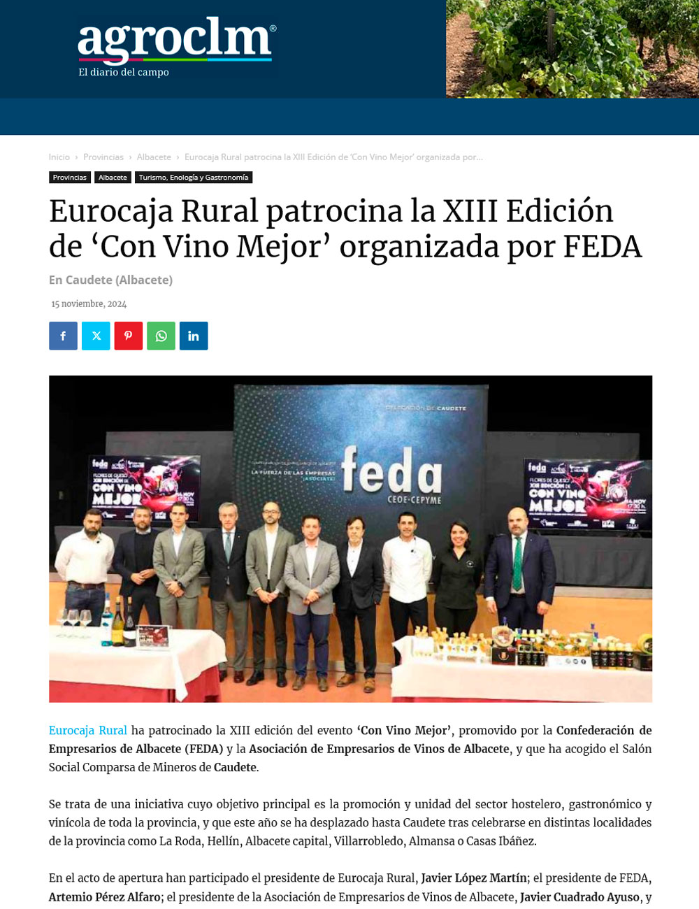 - Mancha Información: EUROCAJA RURAL patrocina la XIII Edición de “Con Vino Mejor” organizada por FEDA.