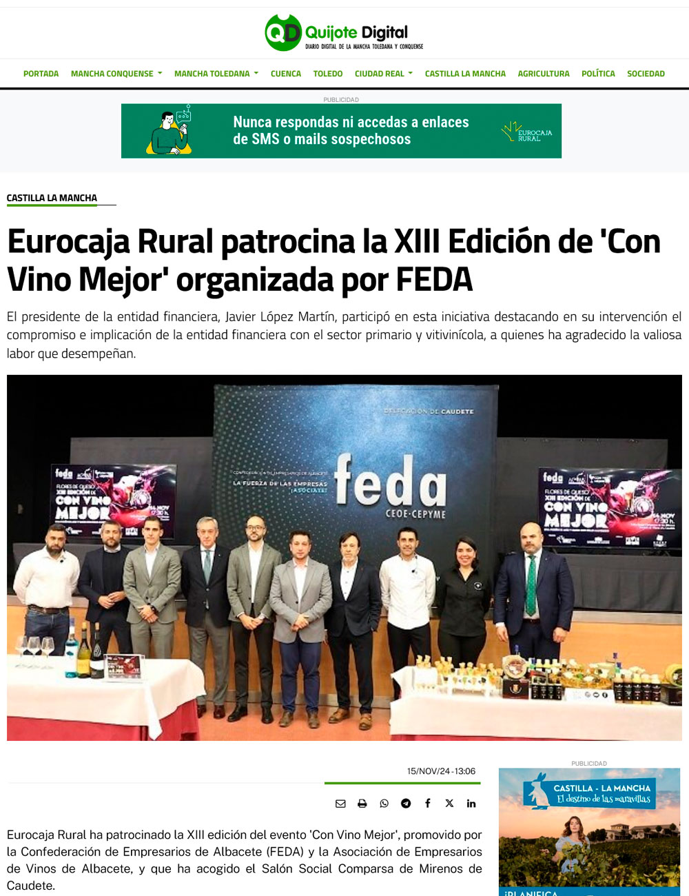 - Quijote Digital: EUROCAJA RURAL patrocina la XIII Edición de “Con Vino Mejor” organizada por FEDA.