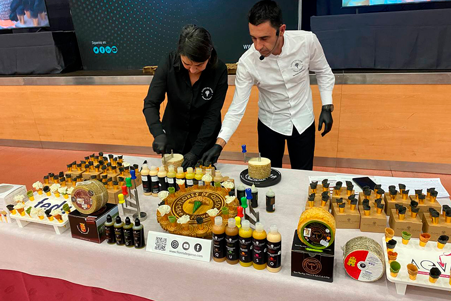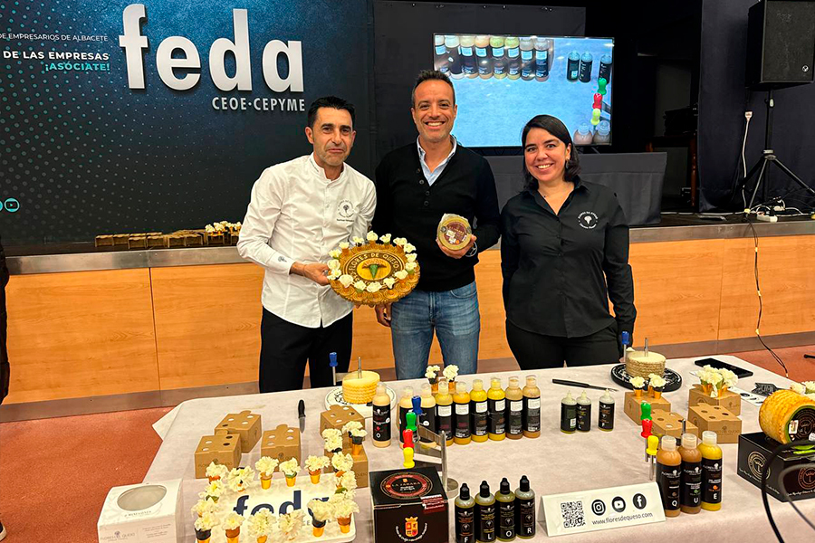 Las Flores de Queso se acompañan de emocionantes emulsiones. Perfectas combinaciones que ofrecen un equilibrio exquisito entre el queso y la suavidad de las emulsiones, creando una sinfonía de sabores y texturas que deleitarán tus sentidos… Para está oportunidad haremos un guiño a productos de la tierra y de nuestras empresas asociadas: Quesos de Pago de la Jaraba, Dehesa de Los Llanos, y de Vinos Cutanda, Miel de Apimancha, Azafrán de Antonio Sotos, Cacahuetes de Naturcaudete, etc.