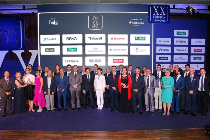 La Confederación de Empresarios de Albacete, FEDA, celebró con éxito la Gala de Entrega de los Premios Empresariales San Juan´2019, una XX Edición muy emotiva y en la que siempre estuvo presente el recuerdo al doctor Antonio Javier Cepillo Boluda. Un vídeo con el premio que recibió el año pasado el joven pediatra, tristemente fallecido hace unos meses, levantó una atronadora ovación, y algunas lágrimas, a las más de 600 personas que se dieron cita en el Palacio de Congresos 'Ciudad de Albacete', representando al tejido empresarial, social e institucional de Albacete y provincia.