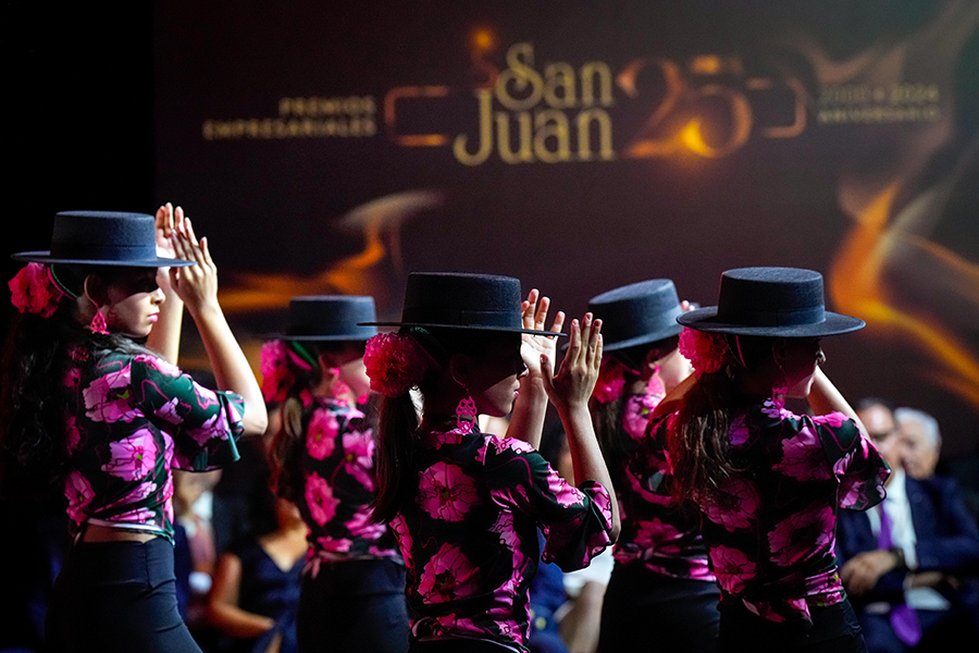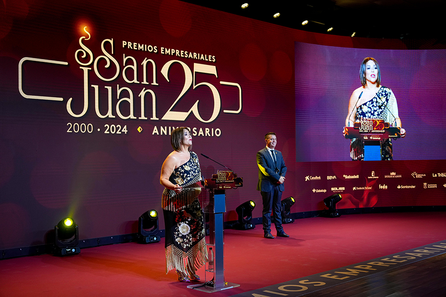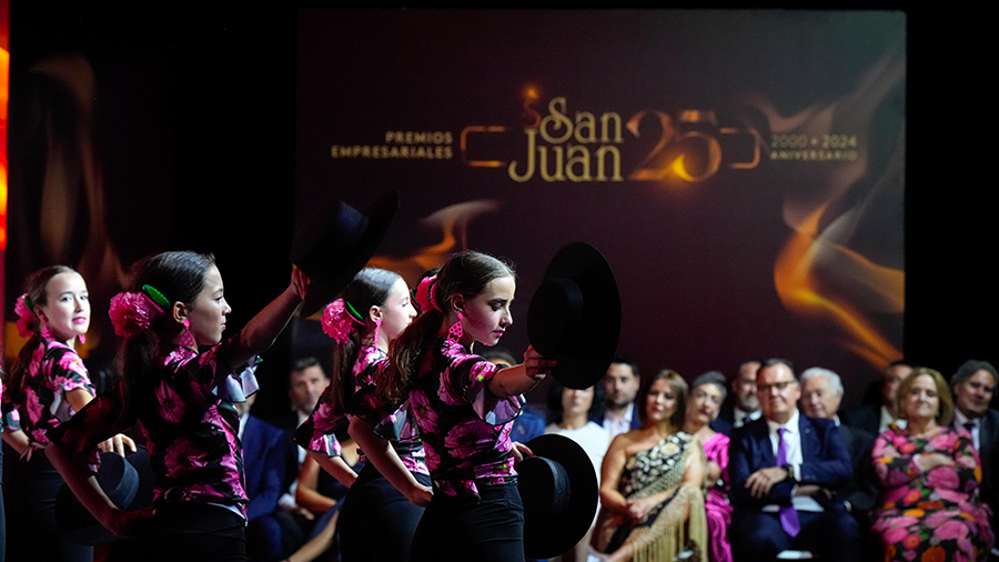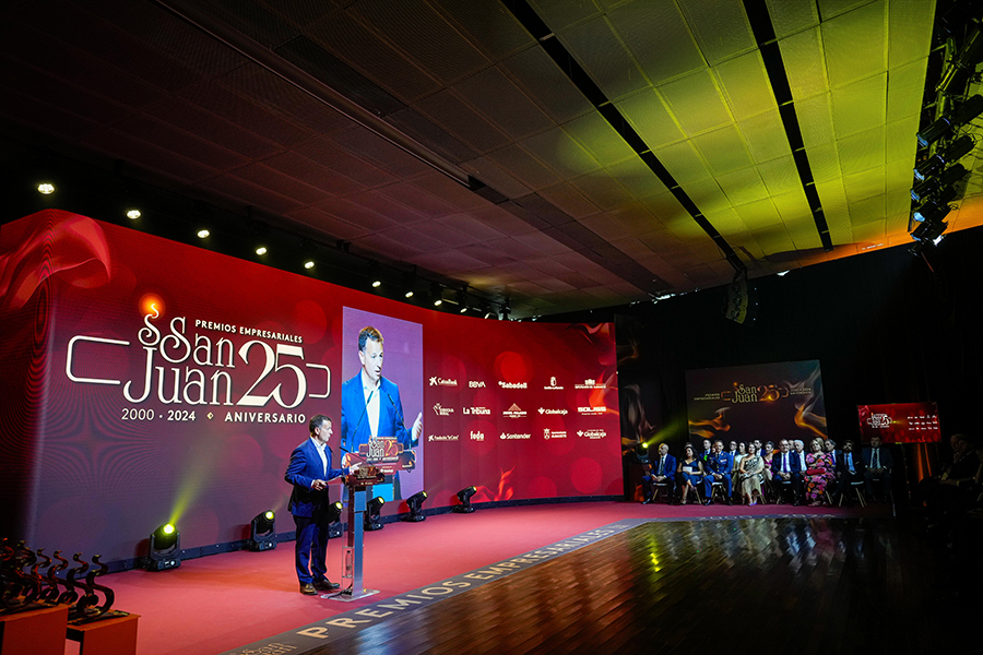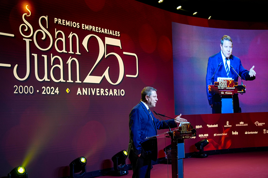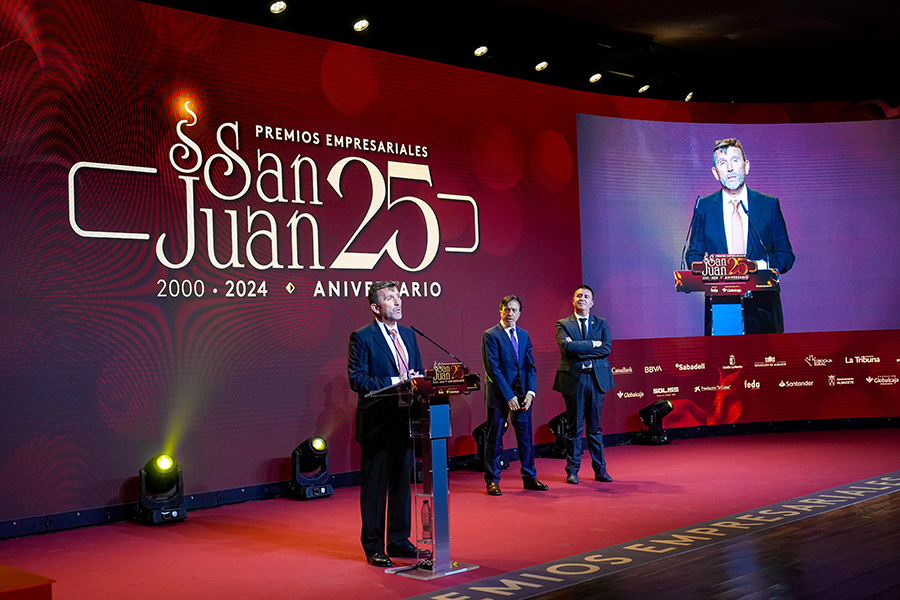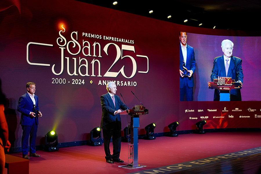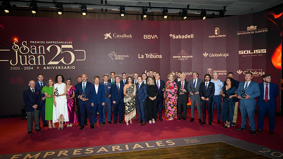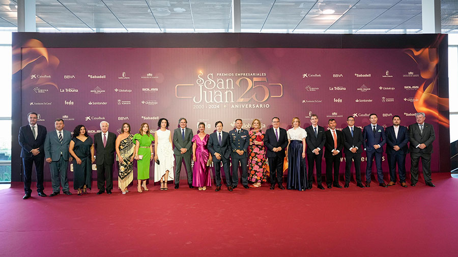 La Confederación de Empresarios de Albacete, FEDA, entregó los Premios Empresariales San Juan 2024, en su 25 Aniversario, en una Gala celebrada en el Palacio de Congresos Ciudad de Albacete, patrocinada un año más por Globalcaja. Más de 700 personas llenaron el recinto, con una amplia representación institucional, empresarial, social y cultural de la ciudad. La comunicadora Alicia Senovilla presentó el acto, vestida con un modelo de la diseñadora local Lola Muñoz y calzada con los zapatos de una de las premiadas, Ana Lucena. El grupo The Gafapasta amenizó la velada con su música en directo, en una Gala que también contó con la actuación de seis jóvenes artistas del Real Conservatorio Profesional de Música y Danza de Albacete.