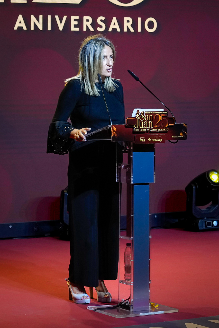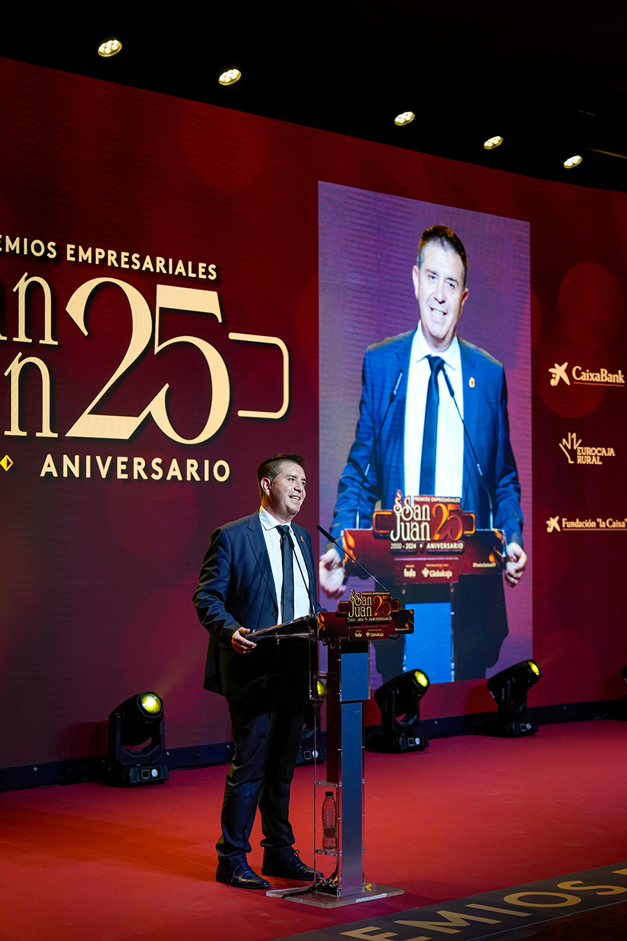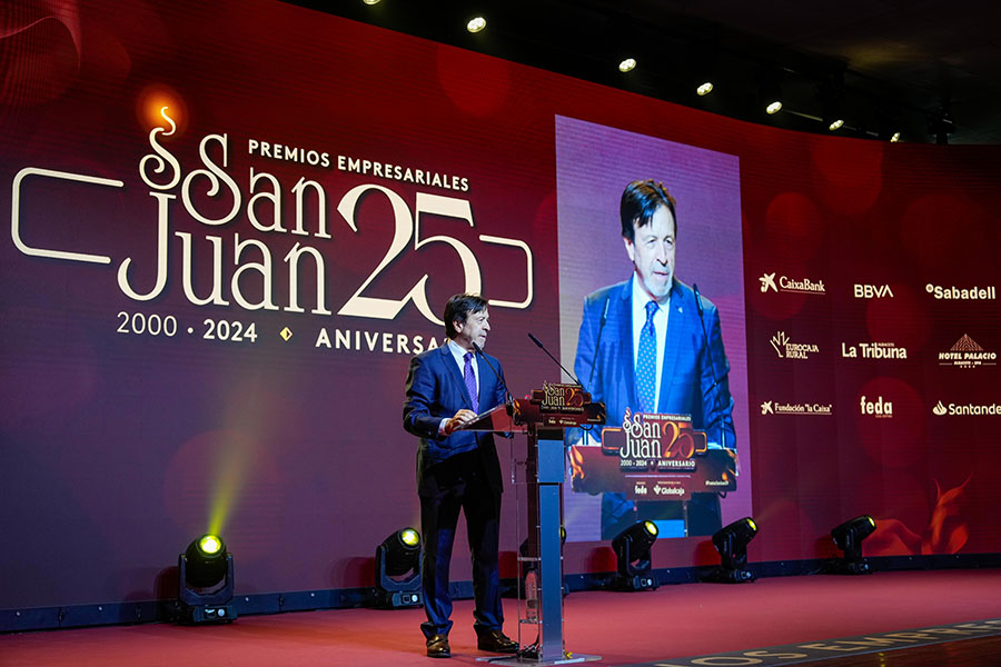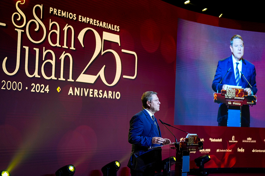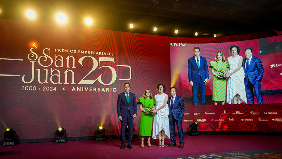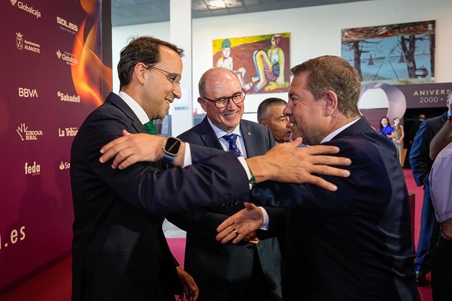 La Confederación de Empresarios de Albacete, FEDA, entregó los Premios Empresariales San Juan 2024, en su 25 Aniversario, en una Gala celebrada en el Palacio de Congresos Ciudad de Albacete, patrocinada un año más por Globalcaja. Más de 700 personas llenaron el recinto, con una amplia representación institucional, empresarial, social y cultural de la ciudad. La comunicadora Alicia Senovilla presentó el acto, vestida con un modelo de la diseñadora local Lola Muñoz y calzada con los zapatos de una de las premiadas, Ana Lucena. El grupo The Gafapasta amenizó la velada con su música en directo, en una Gala que también contó con la actuación de seis jóvenes artistas del Real Conservatorio Profesional de Música y Danza de Albacete.