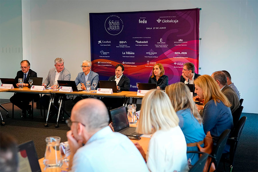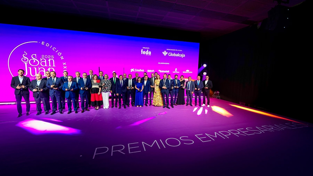 La Gala de entrega de los Premios Empresariales San Juan’2025-XXVI Edición de la Confederación de Empresarios de Albacete, FEDA, volvió a demostrar un año más la fuerza, importancia y relevancia del tejido empresarial albaceteño. Cerca de 700 persona llenaron el Palacio de Congresos Ciudad de Albacete, en un evento conducido por la periodista Nira Juanco, con música en directo del grupo The Gafapasta, un espectáculo de danza a cargo de Dánzame Mucho, de las hermanas Ballesteros, participantes en el Programa Sherpa, de apoyo a emprendedores de FEDA; y la emoción y el entusiasmo que siempre demuestran los diferentes premiados.