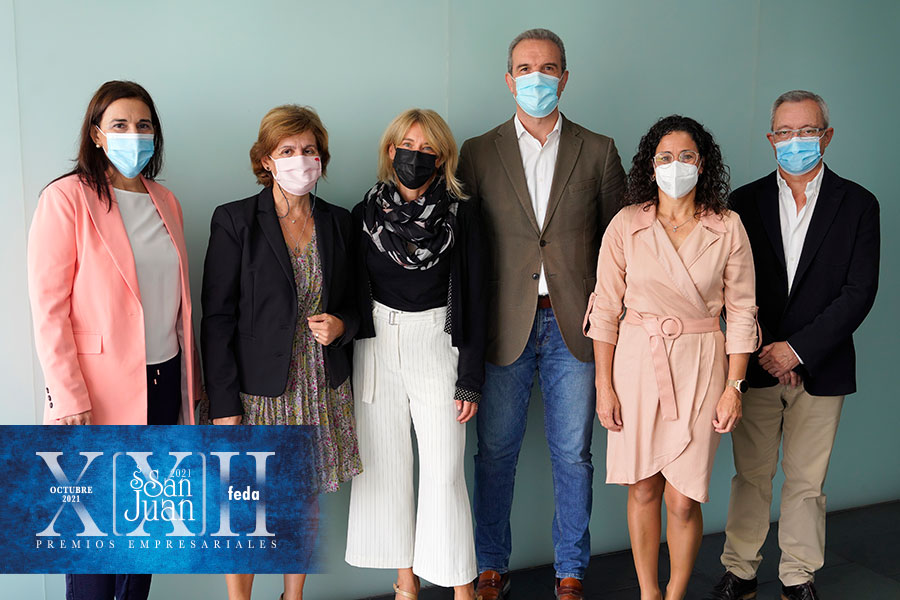 Entrega: el presidente de FEDA y presidente del Jurado de los Premios San Juan, Artemio Pérez Alfaro, y el presidente del Patronato de la Fundación Globalcaja-Albacete, Herminio Molina. Recogen: Juan David Fernández de la Gerencia de Atención Integrada (GAI) Albacete, Minerva Ávila Lluch de la GAI de Almansa, Francisca Díaz Ruiz de la GAI de Hellín y Rafael Fernández González de la GAI de Villarrobledo, y Blanca Hernández, delegada de Sanidad.