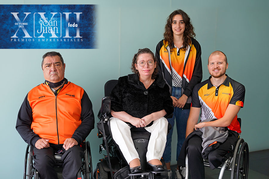 Entrega: Dionisio Gómez, director Beatriz Hoteles en Albacete. Recogen: Encarni Rodríguez, presidenta de Amiab, y José Carlos Jurado, director técnico deportivo del Club.