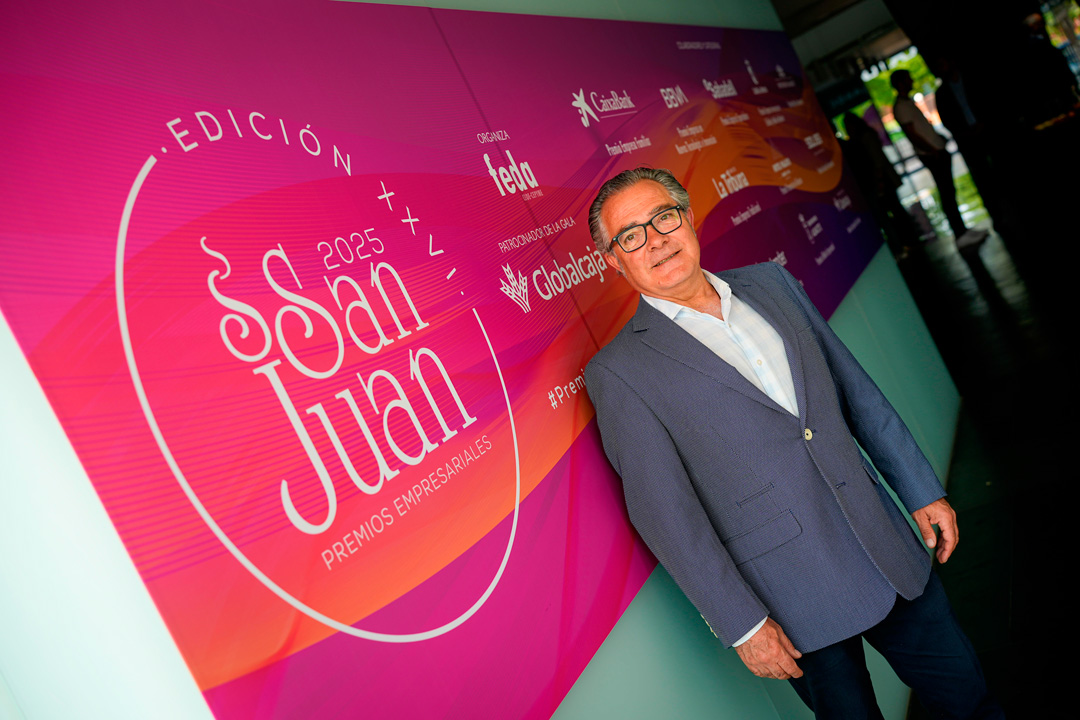 Entregan: el Presidente de FEDA y Presidente del Jurado de los Premios San Juan, Artemio Pérez Alfaro, y Pedro Palacios, director general de Globalcaja. Recoge: Juan Miguel Tolosa Pérez. Propietario y Director.