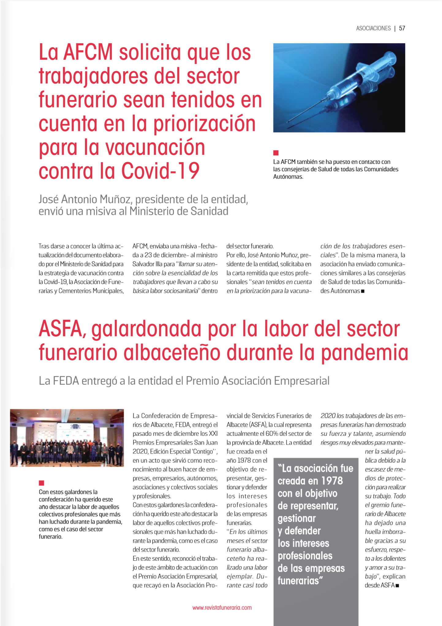 Revista Funeraria 158: ASFA, galardonada por la labor del sector funerario albaceteño durante la pandemia