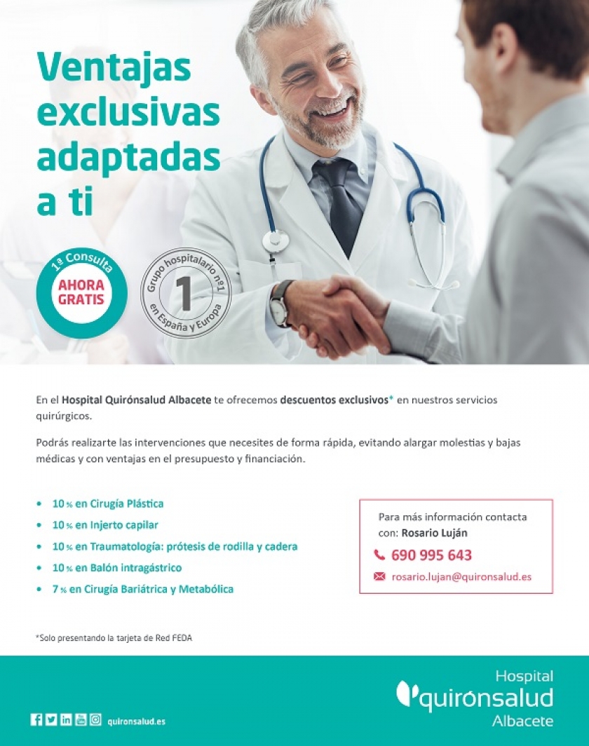 Hospital Quironsalud Albacete te ofrece descuentos exclusivos en sus servicios quirúrgicos.