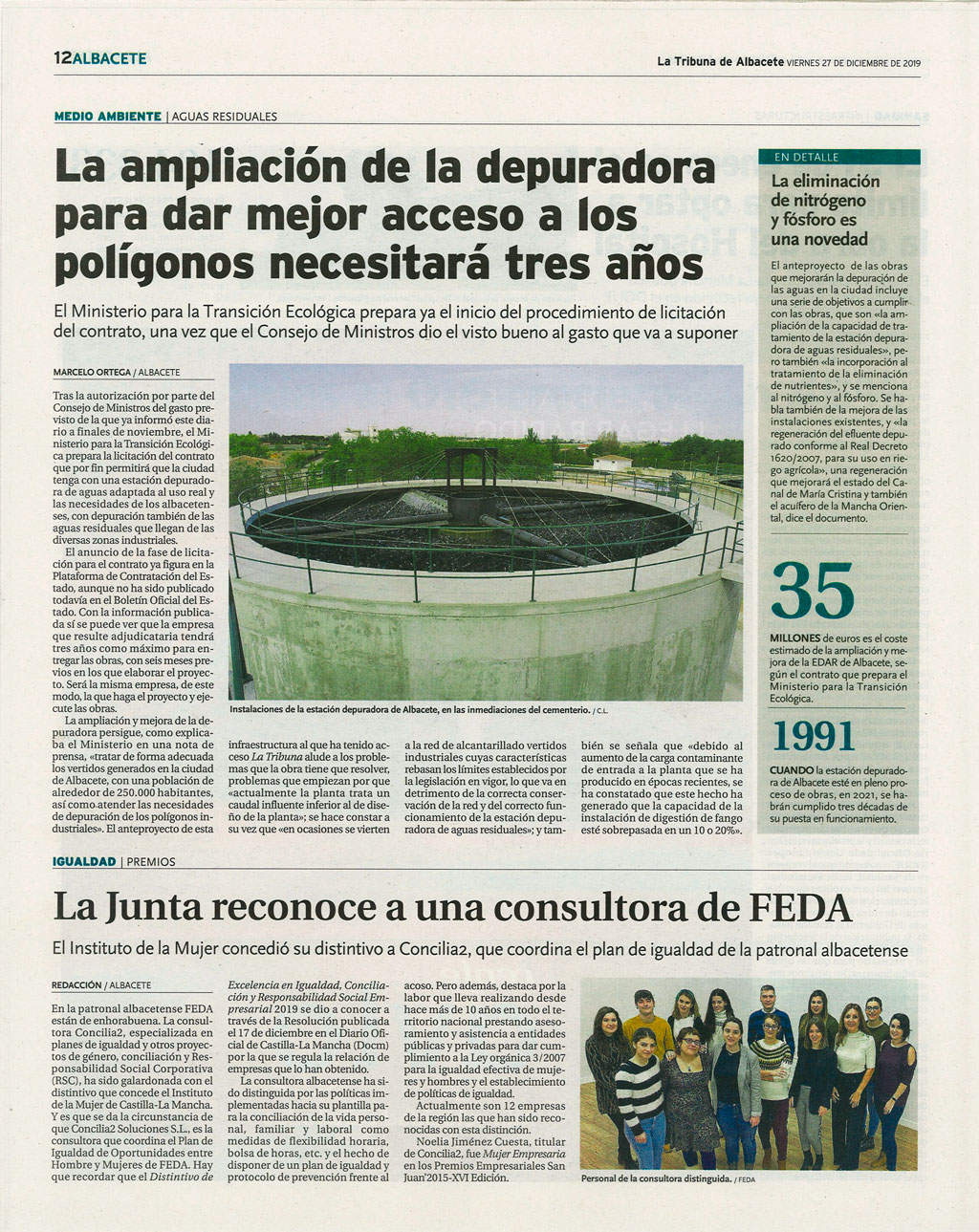 El Digital de Albacete: La consultora del Plan de Igualdad de FEDA, única empresa que obtiene el Distintivo de Excelencia en 2019